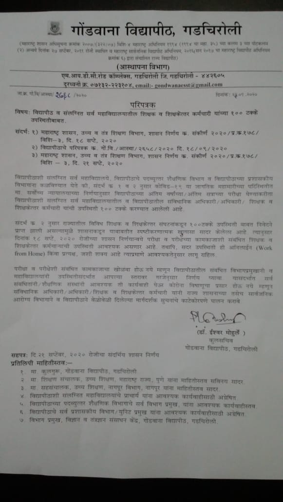 - प्पारीपत्रक:- गोंडवाना विद्यापीठाशी सलग्नित महाविद्यालयाचे प्रश्न सोडविण्याकरिता कॅम्प आयोजित करण्याबाबत.
